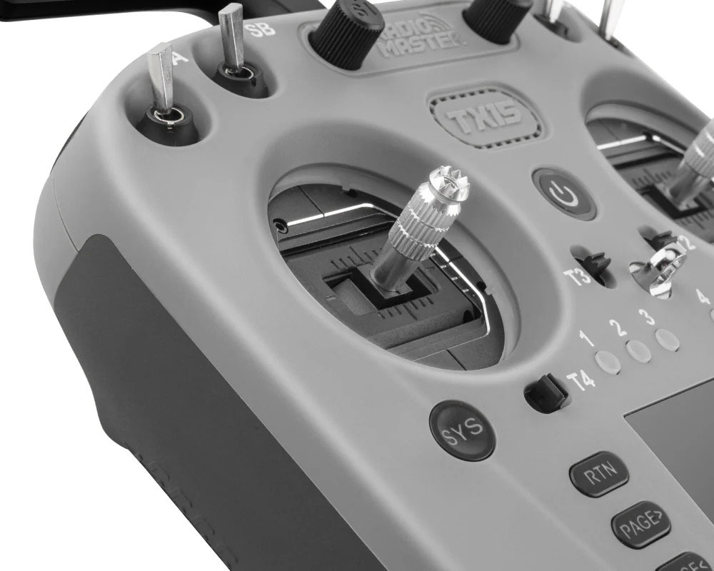 Четкое и яркое изображение обеспечивает 3.5-дюймовый IPS-экран с разрешением 262 тыс. цветов и яркостью 600 нит, прекрасно виден даже под прямыми солнечными лучами. Версия TX15 Standard комплектуется сенсорными джойстиками V5.0 Hall в шести цветах. Продуманная система охлаждения, USB-C для зарядки, подключение к симулятору, обновление прошивки и быстрый доступ к памяти гарантируют стабильную работу.