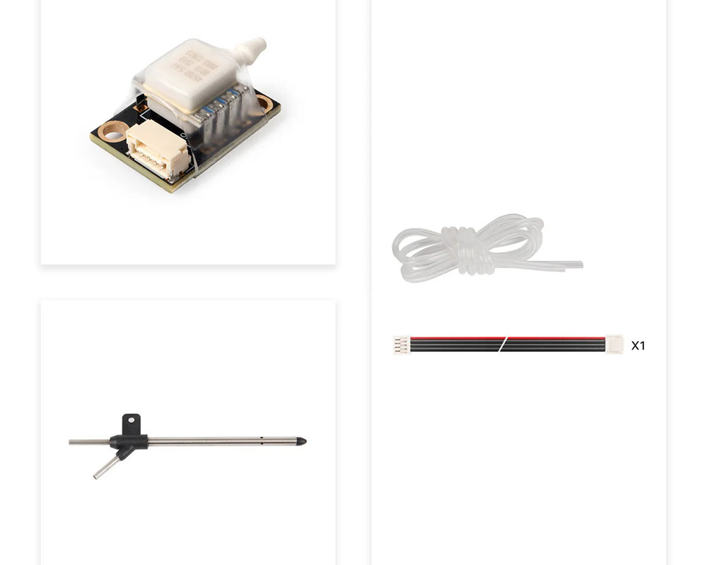 В основе модуля — дифференциальный сенсор давления Measurement Specialties 4525DO с диапазоном 1 psi, соответствующий скоростям примерно до 100 м/с (около 360 км/ч). Использование 14-битного АЦП позволяет добиться разрешения 0,84 Па. Датчик также измеряет температуру, позволяющую корректно вычислять истинную воздушную скорость (TAS) на основе показателей скорости и статического давления с контроллера полета.