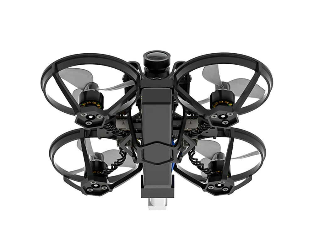 Благодаря двигателям 0702 30000KV и пропеллерам GEMFAN 31 мм квадрокоптер имеет высокую чувствительность на стыках и точное управление. Вес ~20 г без аккумулятора делает его безопасным для полетов в комнатах, узких проходах и вокруг помех. Взлетная масса с батареей 1S 300 мА составляет примерно 28 г, время полета — до 4 минут.