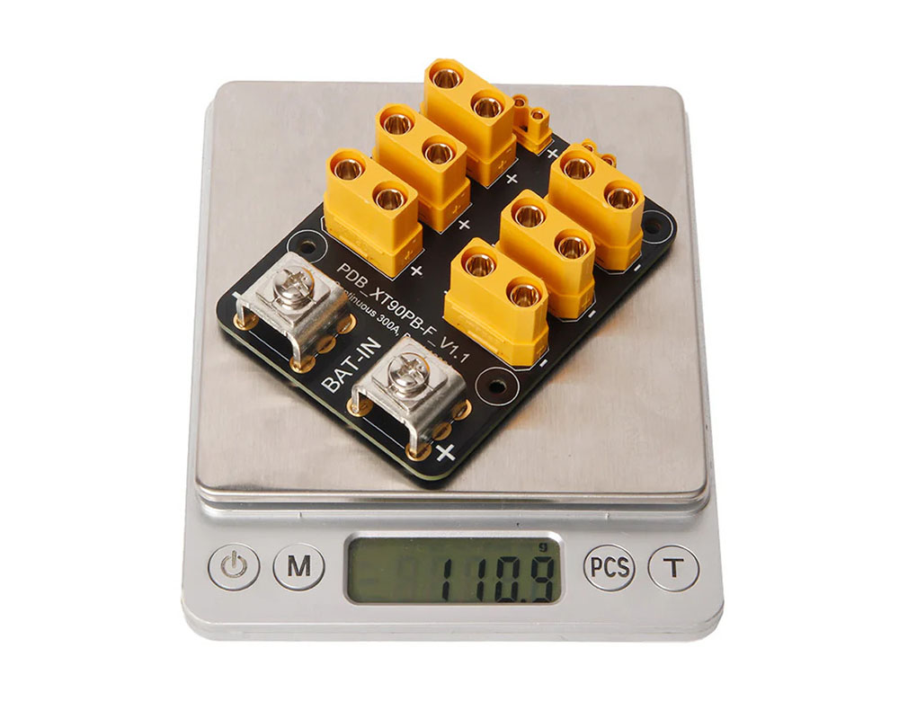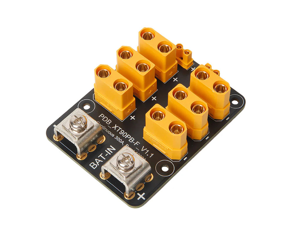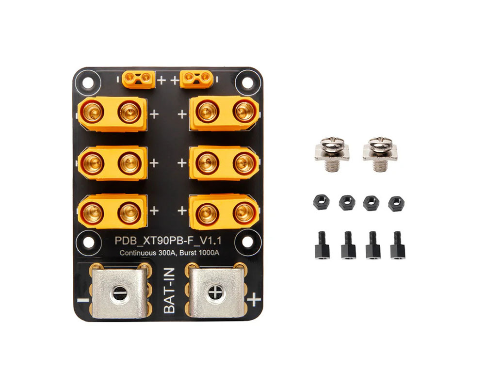 Благодаря 10 oz медной плате PDB эффективно отводит тепло и сохраняет электрическую стабильность даже при длительной нагрузке до 300 А и кратковременных пиках до 1000 А. Предварительно припаянные разъемы XT90 и XT30, а также винтовые клеммы значительно упрощают соединений.