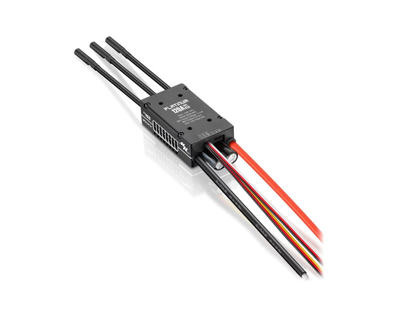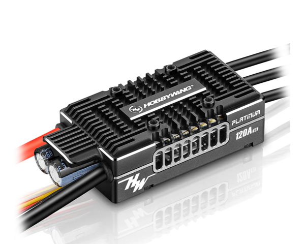 Hobbywing Platinum 120A V5 — высокопроизводительный бесколлекторный ESC премиум-класса, предназначенный для авиамоделей и вертолетов среднего класса. Регулятор построен на 32-битной платформе с оптимизированными алгоритмами управления оборотами, что обеспечивает точную стабилизацию RPM, быструю реакцию на газ и высокую эффективность.