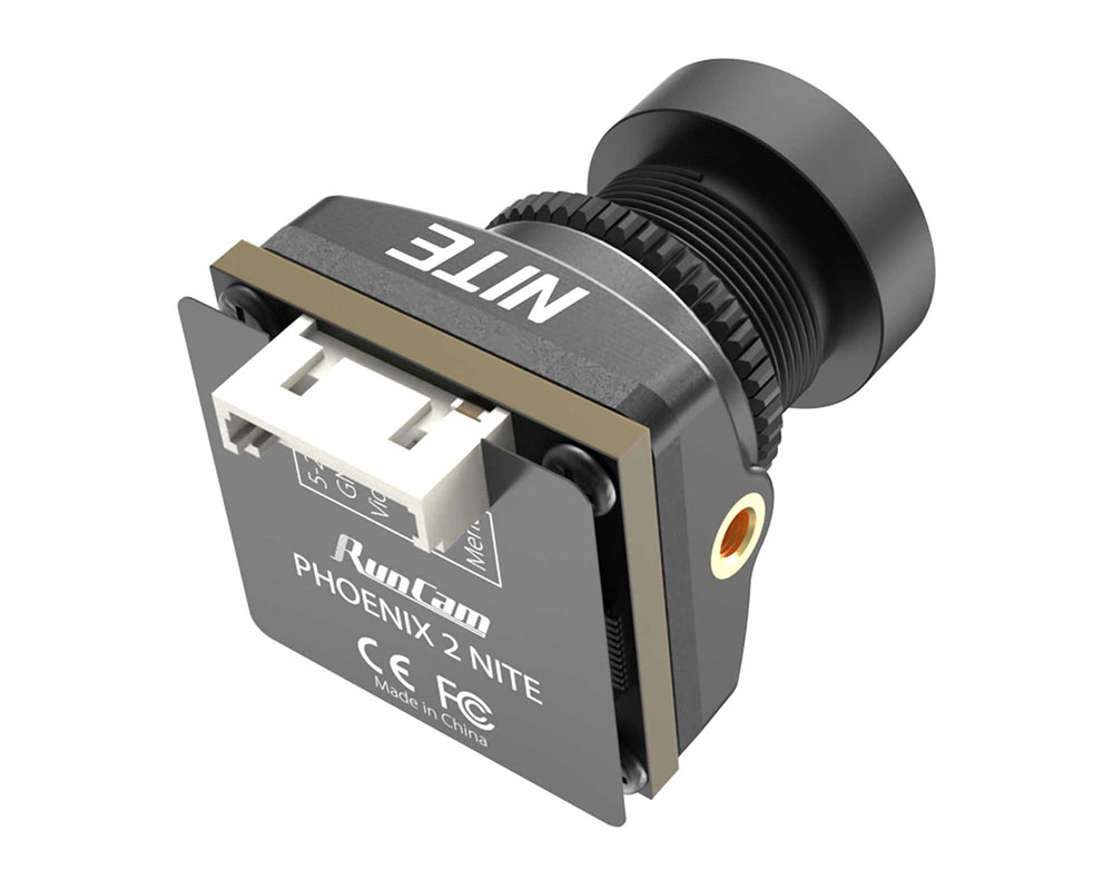 RunCam Phoenix 2 Nite — високочутлива аналогова FPV камера, створена спеціально для польотів у темний час доби або при слабкому освітленні. Камера оснащена 1/2.8" Starlight CMOS-сенсором без інфрачервоного фільтра, що значно підвищує світлочутливість і дозволяє отримувати чітке та деталізоване відео навіть у майже повній темряві. Роздільна здатність 1500TVL забезпечує різку картинку з природною передачею кольорів та мінімальним рівнем шумів. FPV камера підтримує перемикання співвідношення сторін 4:3 або 16:9 та стандартів відеосигналу PAL/NTSC через OSD-меню. Завдяки компактному формату 19×19 мм вона сумісна з більшістю рам для FPV дронів. Широкий діапазон живлення 5–24 В дозволяє підключати камеру безпосередньо до різних типів польотних контролерів або відеопередавачів.