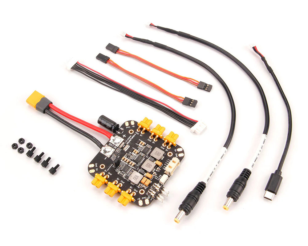Модуль спроєктований спеціально для мультироторних платформ (наприклад, X500 V2). Оснащений попередньо встановленими роз’ємами XT30 та XT60 для підключення ESC і акумулятора, має два виходи 5 В BEC, а також перемикний вихід 8 В або 12 В для живлення різноманітної периферії.