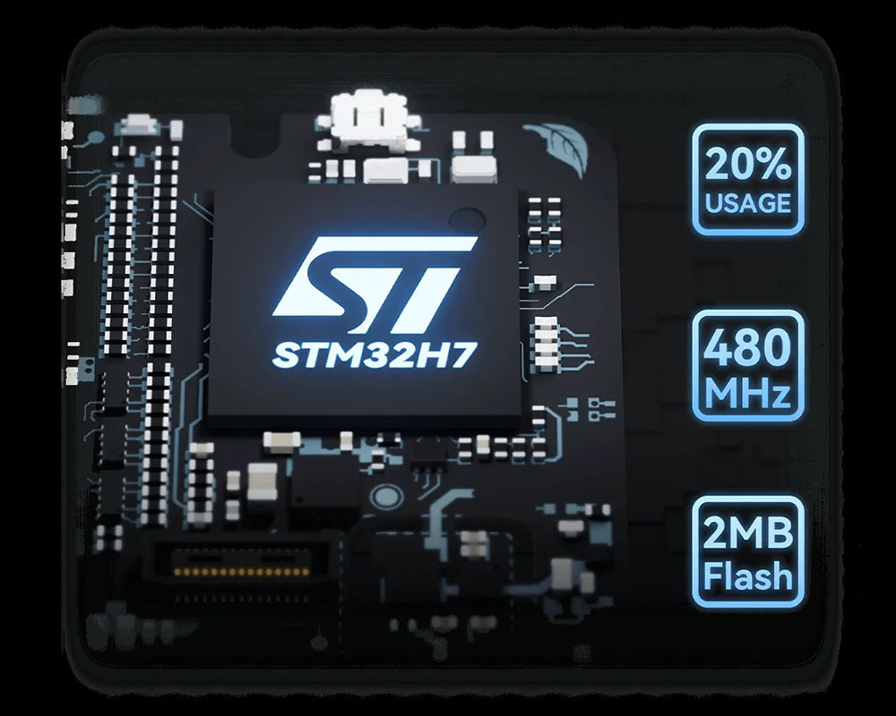 - Процесор: STM32H7 Cortex-M7, 480 МГц