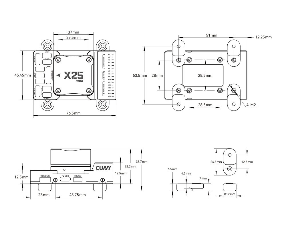 CUAV X25 EVO — це високопродуктивний політний контролер промислового класу, розроблений для складних безпілотних систем. Контролер отримав потужний процесор, розширену сенсорну систему та вдосконалену архітектуру живлення, що забезпечує стабільну роботу навіть у складних умовах експлуатації. Він підходить для мультикоптерів, літаків, VTOL-платформ та інших автономних роботизованих систем.
