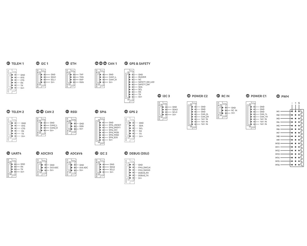 Контролер оснащений процесором STM32H7 Arm Cortex-M7 з частотою 480 МГц, що забезпечує високу обчислювальну продуктивність, підтримку складних алгоритмів навігації та стабільну роботу з сучасними прошивками. Пристрій повністю сумісний із системами ArduPilot та PX4, що відкриває широкі можливості для налаштування й розвитку проєктів.