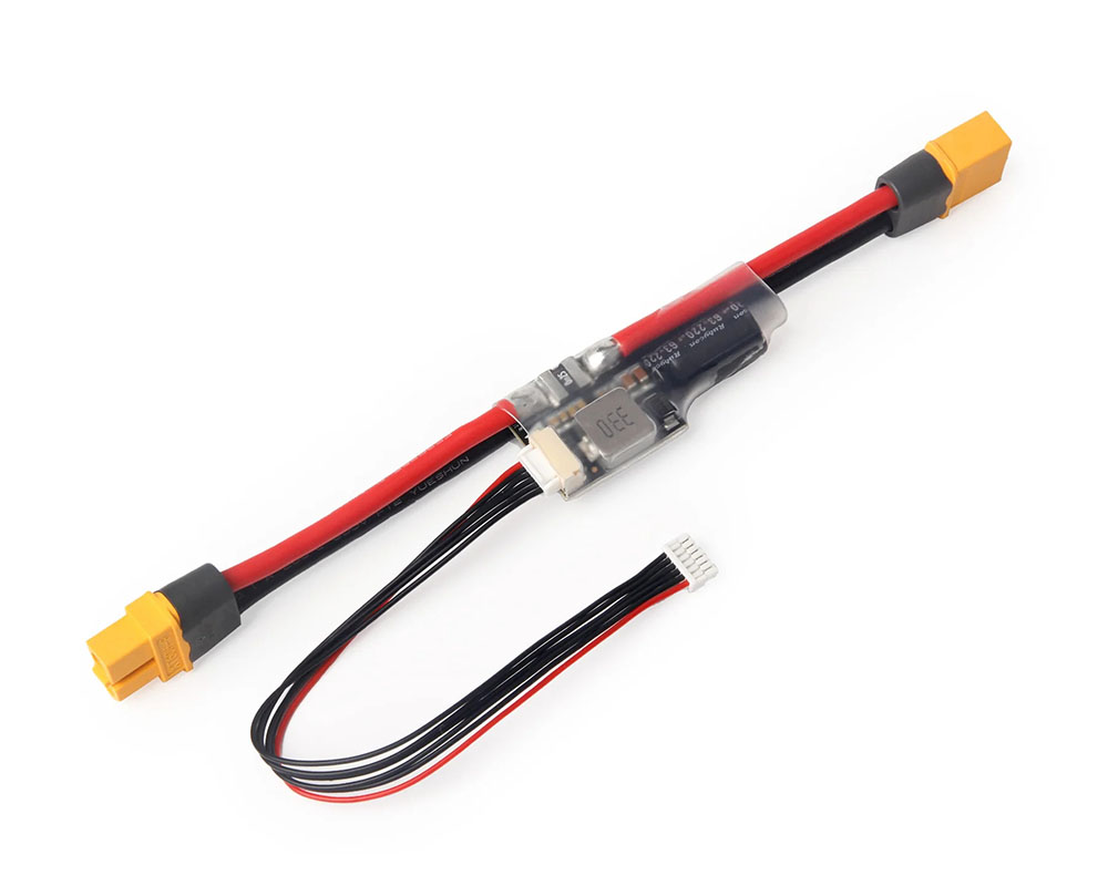 - Роз’єм XT60 та провід 12 AWG, які припаяні до плати, розраховані на 30 А тривалого струму та 60 А короткочасного (< 60 с). У разі використання вищих струмів необхідно замінити тип роз’єму та переріз проводів відповідно.