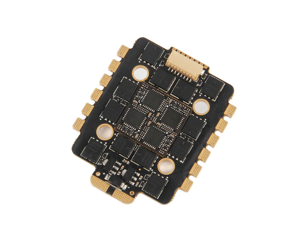 Регулятор розрахований на живлення від 4–6S LiPo та підтримує 50 А безперервного струму на канал із піковими навантаженнями до 60 А, що робить його придатним для фристайлу, рейсингу й потужних збірок у компактних рамах. Нові MOSFET із низьким внутрішнім опором та індивідуальними металевими радіаторами ефективно відводять тепло й підвищують ресурс компонентів навіть при тривалих навантаженнях.