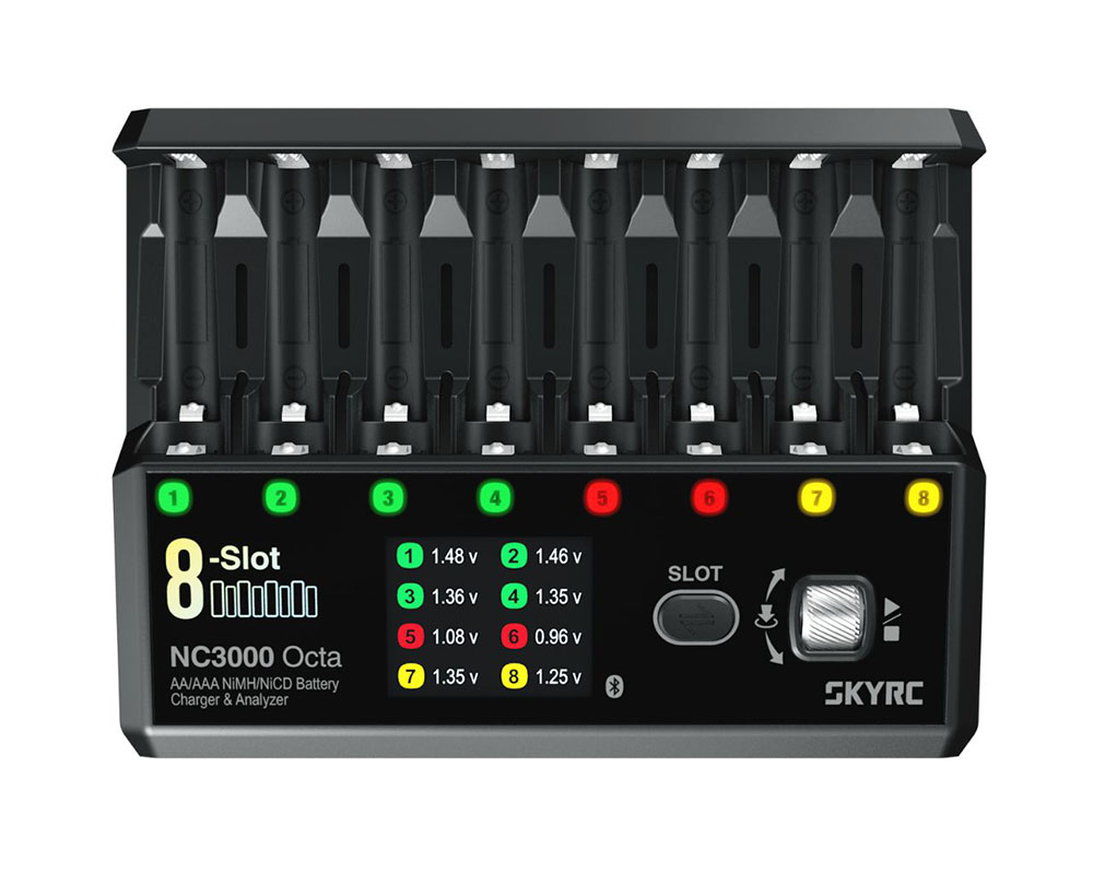 - 8 незалежних слотів для AA/AAA акумуляторів